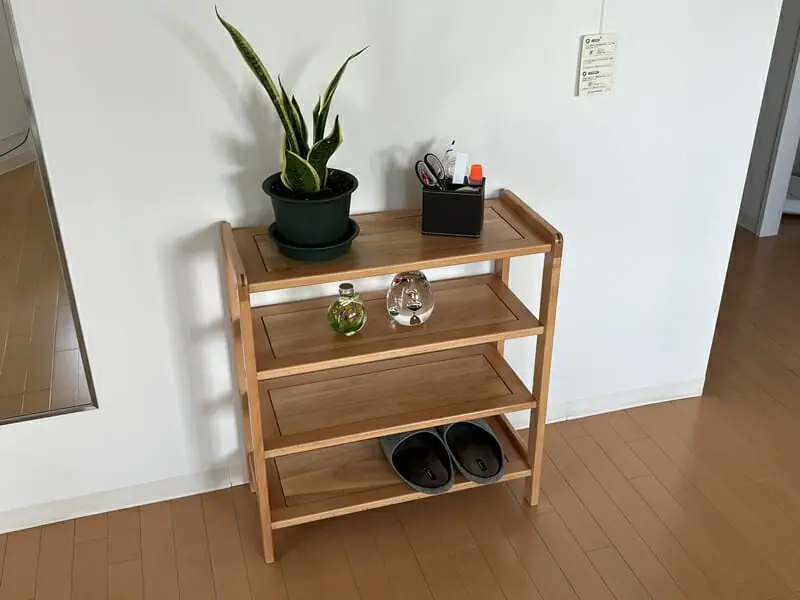 以上の通り、明るい雰囲気でどの部屋にもフィットさせやすい、汎用性に優れたシューズラックとなっている。