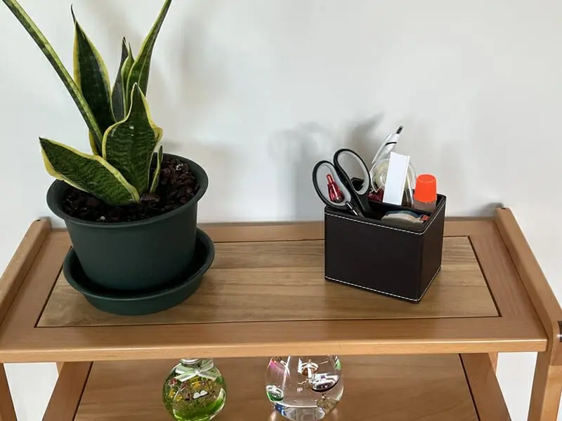 ▼実際に物を置いて使用している様子。小物や観葉植物などを置くのにも丁度よいサイズ感だ。
