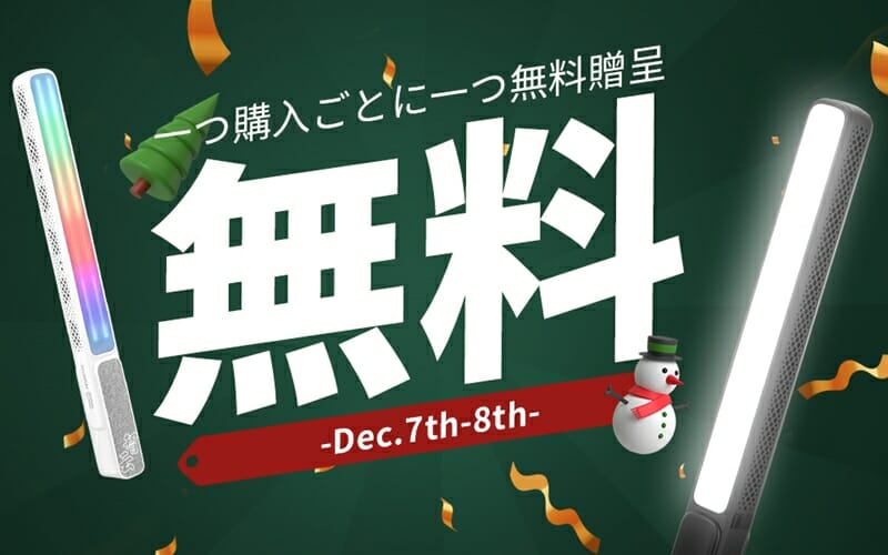 ZHIYUN FIVERAYのLED撮影ライトについて、大幅な割引が適用されるうえ、1台購入するともう1台が無料で付いてくる非常にお得なキャンペーンが実施されています。