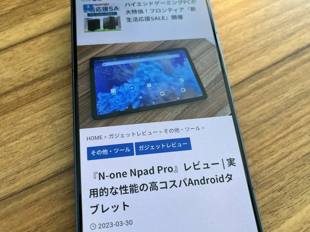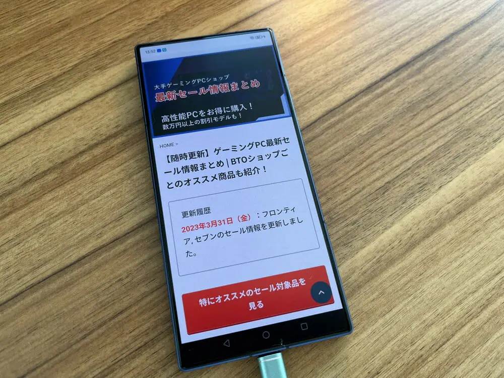 ▼ウェブサイト閲覧時も、細かい文字まで明瞭に表示され見やすい。ページスクロールもなめらかで心地よい。
