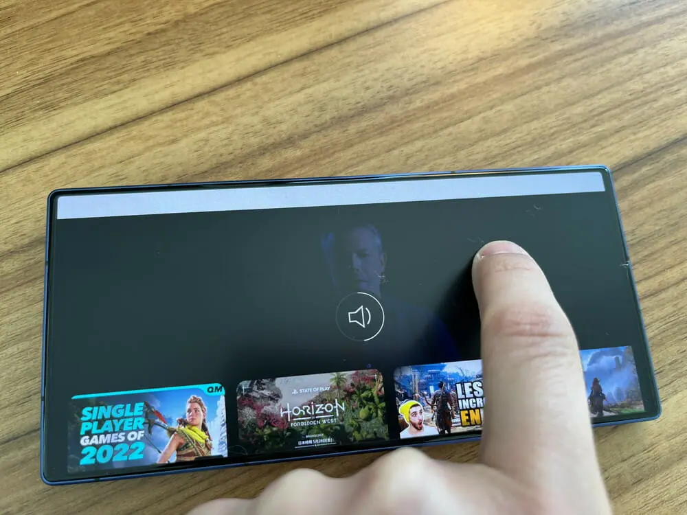 ▼なお、動画視聴中に画面左側を上下にスワイプすると明るさの調節、画面右側を上下にスワイプすると音量調節をスムーズに行うことが出来る機能も搭載されている。