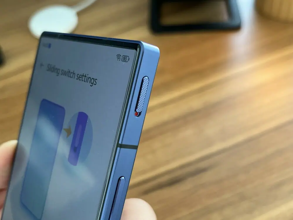 ▼右側面には電源ボタン、音量調節ボタンに加えて、スライドスイッチが用意。スライドスイッチには設定アプリから好みの機能を割り当てることが可能だ。