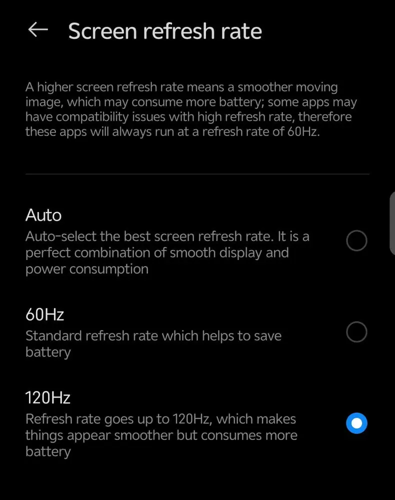 ▼リフレッシュレートは設定アプリより切り替えることが出来る。
