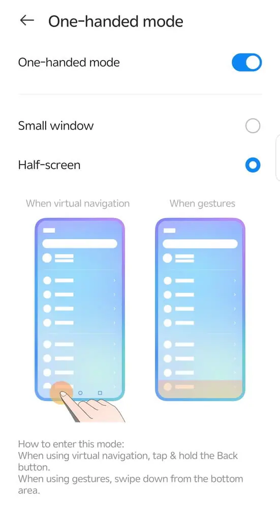 ▼「One-handed mode(片手モード)」。片手でスマホを扱いやすいように調節可能。
