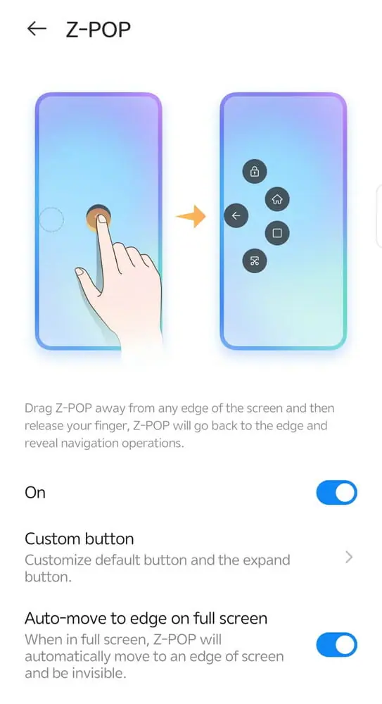 ▼「Z-POP」機能。画面端からスワイプした場合に幾つかの操作ボタンを出現させ、瞬時にアクセス可能。