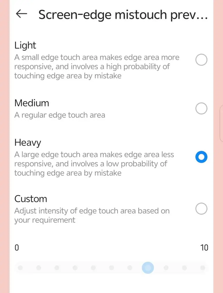 ▼画面端のタッチ操作非認識エリアを調節可能。手のひら等が画面に触れてしまった場合の誤操作を防ぐことが出来る。