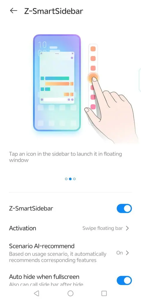 ▼「Z-SmartSidebar」機能。画面端に、各機能へ瞬時にアクセスできるサイドバーを表示する。