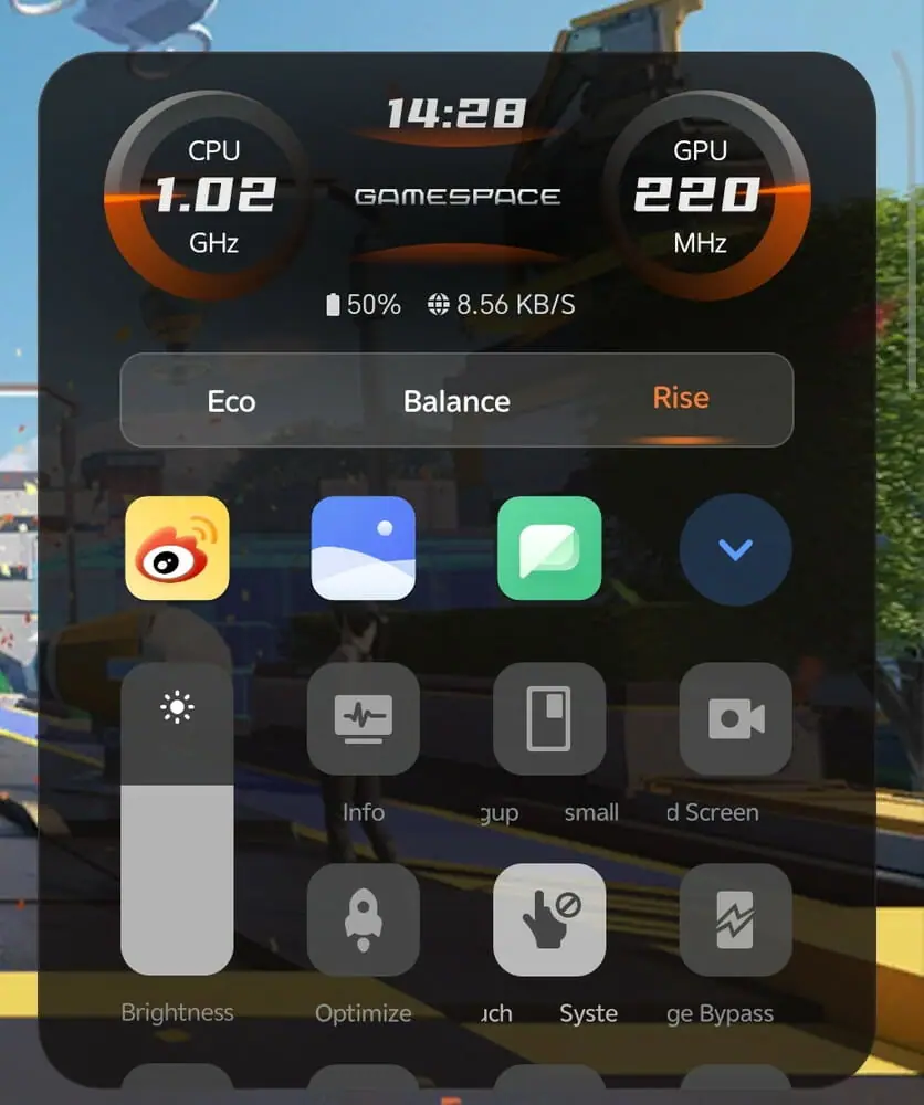 ▼パフォーマンスの切り替えから、画面録画、着信OFFなど、様々な便利機能を利用できる。