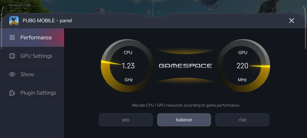 ▼ゲームスペースのパネルには、パフォーマンスや映像品質に関するカスタマイズ項目が用意されている。